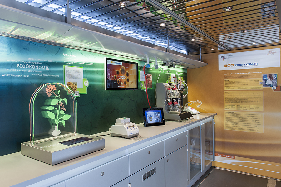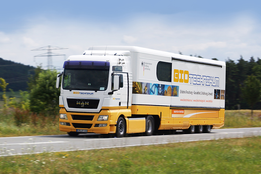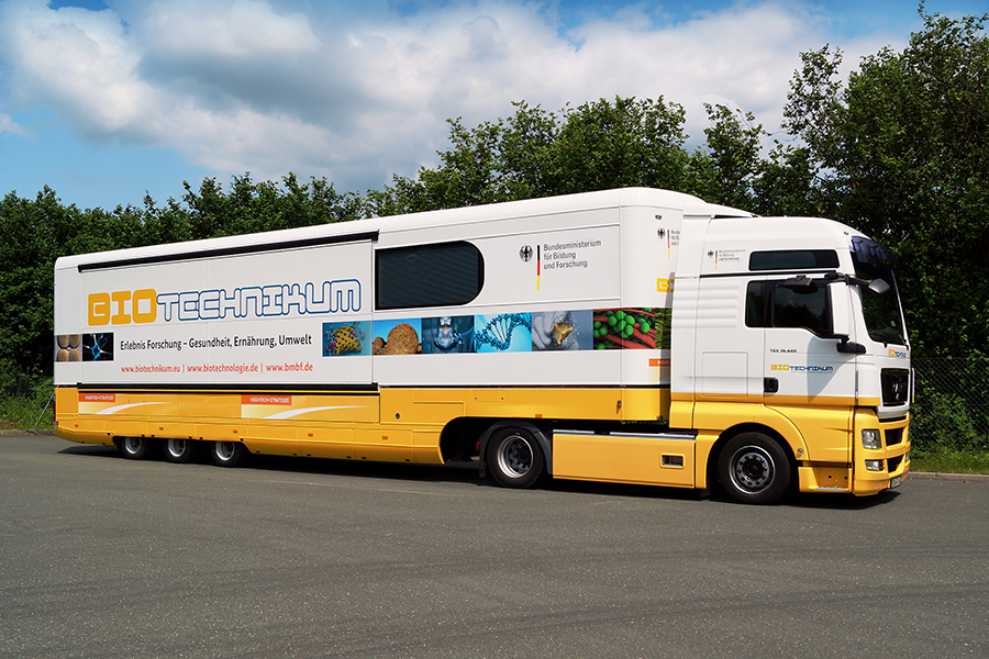 Willkommen in der mobilen Erlebniswelt BIOTechnikum, willkommen in der Welt der Biotechnologie! Vielschichtig, abwechslungsreich und überraschend wie die Technologie selbst ist die Welt, in der sie sich entdecken lässt. Das doppelstöckige Ausstellungsfahrzeug BIOTechnikum ist Labor, Ausstellung, Multimedia-Raum und Dialogforum zugleich. Begleitet von erfahrenen Wissenschaftlern bringt es auf seiner Tour durch Deutschland die Forschung in der modernen Biotechnologie unter anderem zu Schulen, Hochschulen, Messen, Veranstaltungen und Unternehmen – und damit direkt zu den Menschen vor Ort.