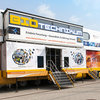 Bild zeigt: Mobile Erlebniswelt BIOTechnikum vor einer Schule