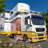 Fast 17 Meter lang und 4 Meter hoch ist der Truck, wenn er auf Deutschlands Straßen unterwegs ist. Doch wie viel Innovation und modernste Technik in dieser mobilen Erlebniswelt steckt, zeigt sich in vollem Ausmaß erst an den Stationen ihrer Tour: Mit ausgefahrenem Obergeschoss misst das Ausstellungsfahrzeug mehr als sechs Meter Höhe und bietet den Besucherinnen und Besuchern auf zwei Ebenen fast 100 Quadratmeter Raum für das Erlebnis Biotechnologie.