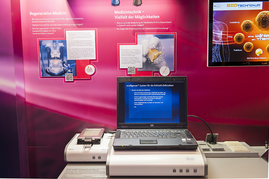 Manche möchten sich einen Überblick über die Biotechnologie verschaffen, andere ihr Wissen in einem spezifischen Forschungsfeld wie etwa der Gesundheitsforschung vertiefen. Einige suchen Exponate, mit denen sie sich im wahrsten Sinne des Wortes an Wissenschaft herantasten können, wieder andere ziehen es vor, sich auf multimedialen Wegen spielerisch mit Themen zu beschäftigen. Gleich wofür und auf welche Weise sich Besucher begeistern können – die Ausstellung der Initiative „BIOTechnikum“ bietet ihnen vielfältige Möglichkeiten.